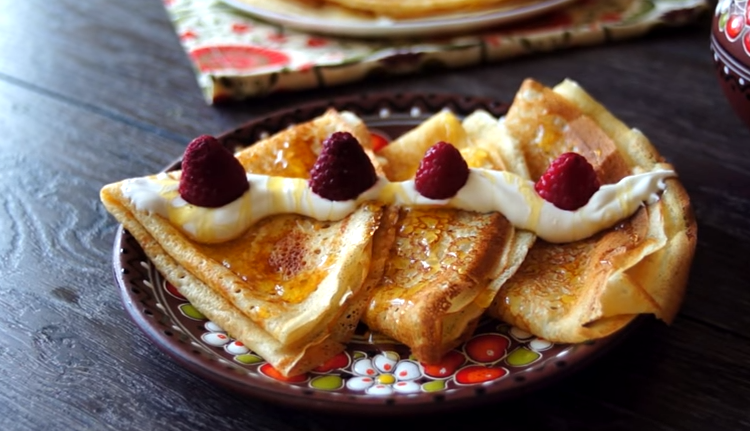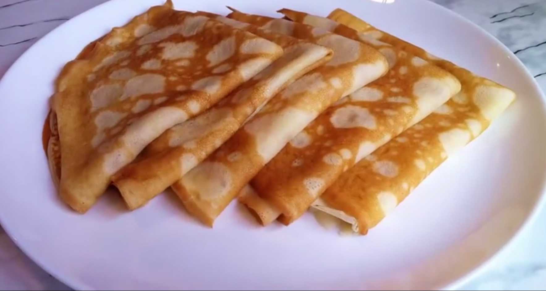 5. Ещё тонкие блинчики получаются на молоке и воде, без дрожжей. Но ещё есть рецепт, который написан чуть выше – на кефире с кипятком. Также можете посмотреть полную статью, как сделать тонкие блины на кефире. Уверен они вам очень понравятся.