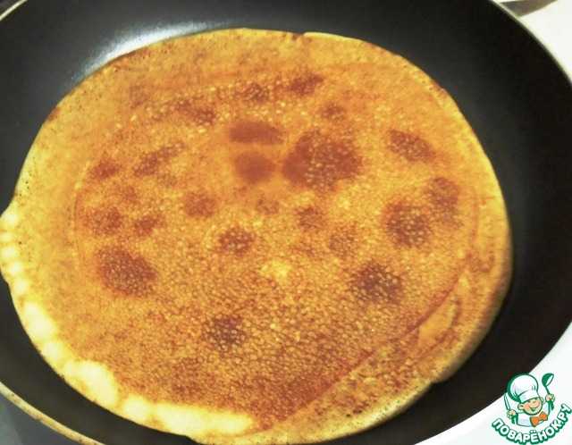На сухую, разогретую сковороду вливаем тонкий слой теста