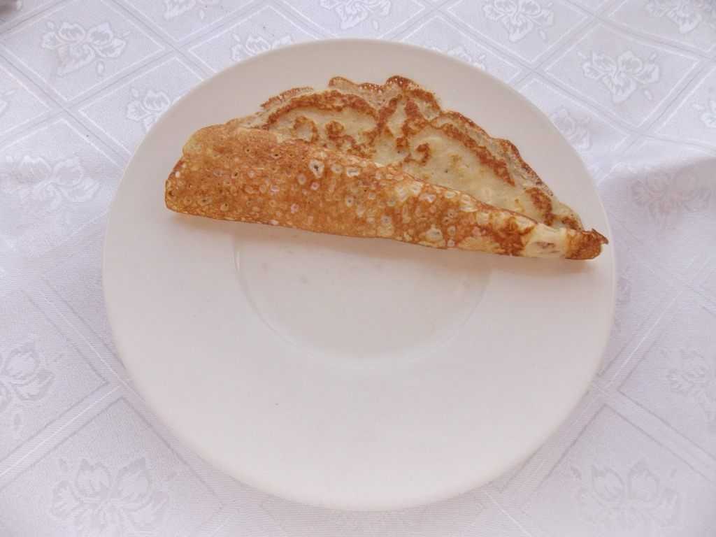 Чистую, сухую сковороду смазываем тонким слоем растительного масла и раскаляем на огне. Тесто следует выливать на очень хорошо разогретую поверхность — тогда блинчик будет дырчатым и легко перевернётся. Если же тесто не шипит, делаясь ажурным, а «плывёт» на сковороде — значит, она недостаточно разогрета.