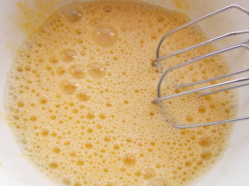 Взбиваем миксером яйца в течение минуты, до образования пышной пенки; в это время кипятим на плите воду.
