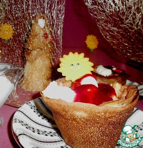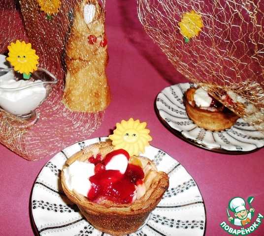 Как завернуть фруктовый микс в блин, чтобы и красиво получилось, и кушать было удобно? Если сделать обычную трубочку — начинка станет выпадать; если завернуть «конвертиком» — получится не так эффектно. Подумав, сделали из блинчиков рожки — наподобие тех «фунтиков», в каких продают семечки.