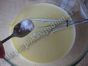 Добавим чуточку соды в смесь, чтобы блины были рассыпчатыми и воздушными.