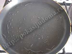 Поставим на разогрев сковороду. Первый раз смажем слегка растительным маслом.