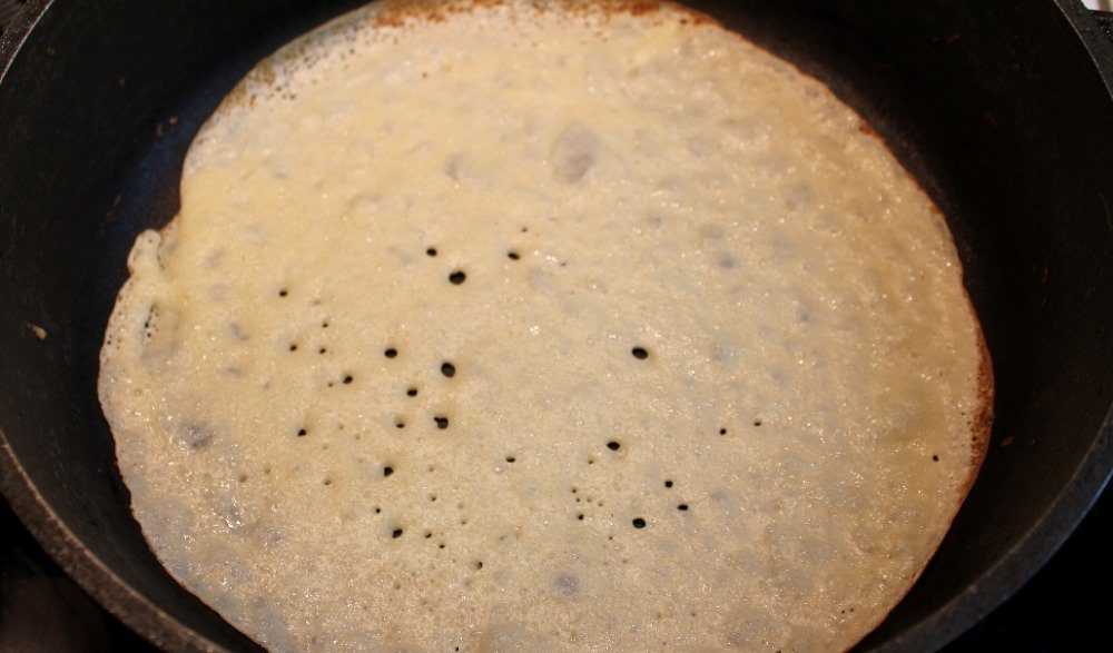Следует отметить, что сковородку мы смазываем маслом только один раз – в начале, все последующие разы масло на сковородку не добавляем.