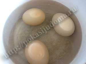Пока жарятся блины, начнем делать грибную начинку для блинов в свободные минутки – поставим варить два яйца.