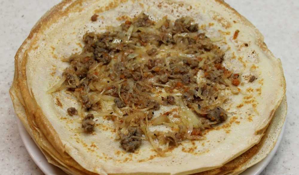 Вкусные блинчики на молоке с мясной начинкой и капустой