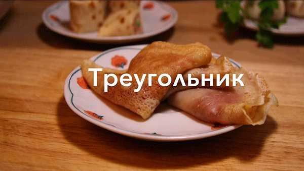 Блин с начинкой сгибаем пополам, а потом еще раз — четвертью, получается треугольник.
