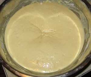 - При перемешивании миксером на малых оборотах влить оставшиеся 700 мл молока.