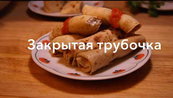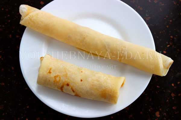 Трубочка может быть открытой или закрытой. В первом случае просто сворачиваем блин валиком. Во втором — сначала загибаем боковые края, а потом уже скручиваем трубочкой.