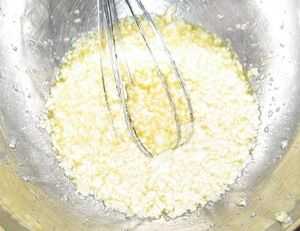 - В яичную массу влить 300 мл молока и еще раз взбить.