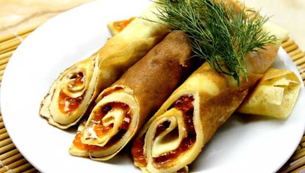 Начинка для блинной закуски на масленицу не должна быть сладкой. Икра лососевых и осетровых – традиционный наполнитель налистников. Котируются любые рыбные начинки и фарш из малосольной трески, толстолобика, карпа, минтая и даже из подвяленного карася.