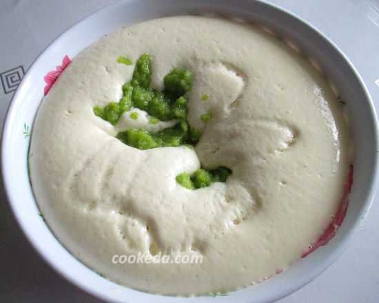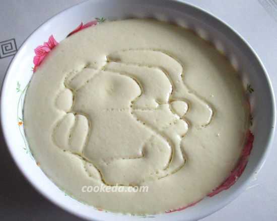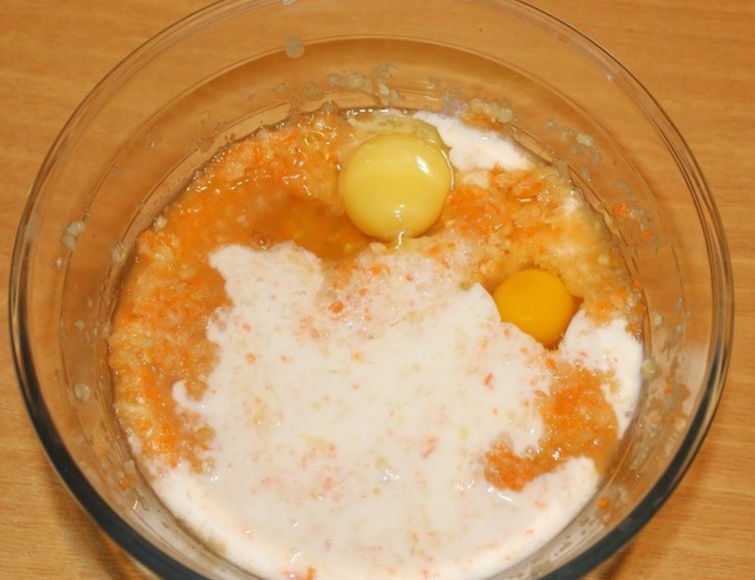 - Смешать эту массу с остальными ингредиентами – яйцами, мукой и т.д., как в базовом рецепте.