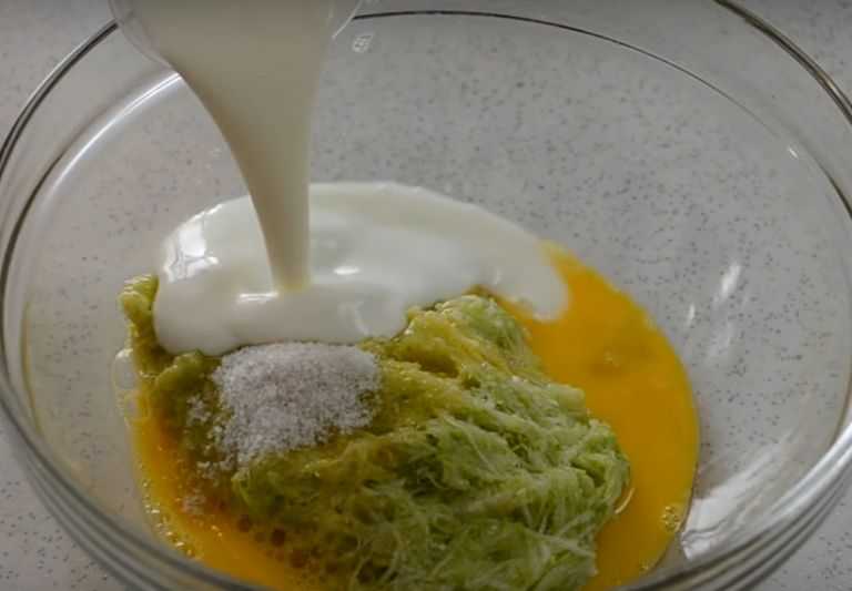 - Полученную кабачковую массу поместите в миску для замеса теста.