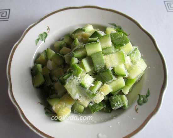 1. Натрите кабачки на мелкой терке, отожмите лишнюю жидкость.