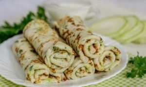 Кабачковые блинчики можно подать с любым соусом. Также они годятся для фаршировки, так как прекрасно сворачиваются и при этом не рвутся.