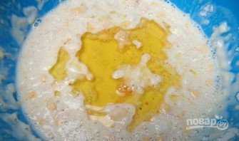 Влейте в миску со всеми ингредиентами масло. Это может быть любое растительное масло без запаха, а также растопленное сливочное.