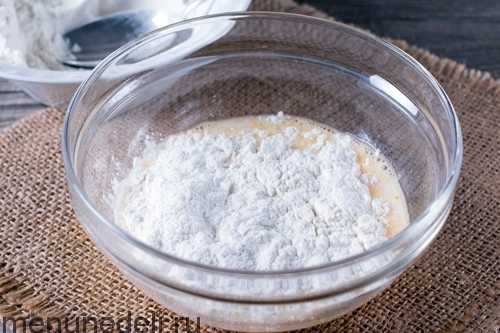 - Осталось добавить просеянную муку и окончательно замесить тесто.