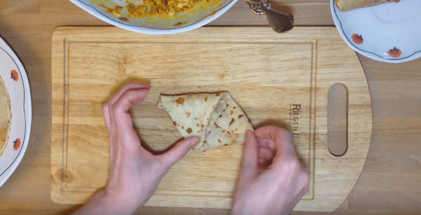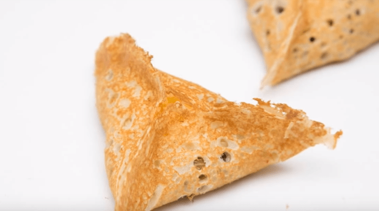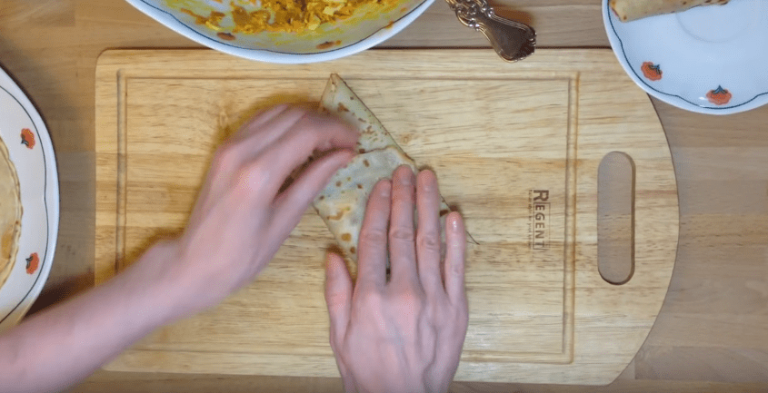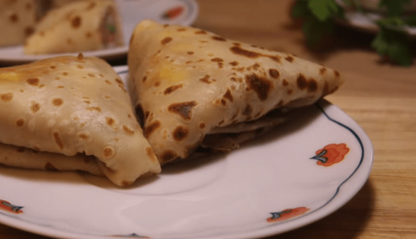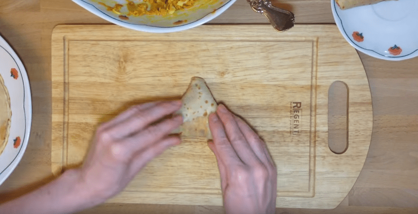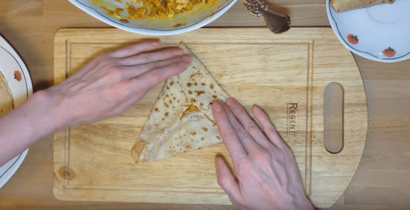 Если вы хотите, чтобы фаршированный блин можно было держать в руках, используйте метод заворачивания двойным треугольником.