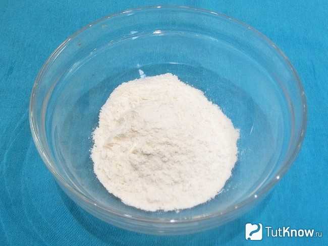 — Просеять муки в объемную миску, перемешать с сахарным песком и солью.
