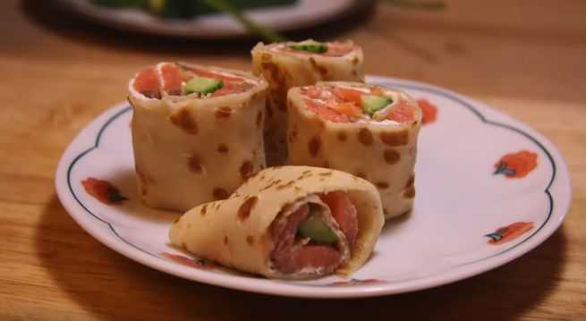 Наверное, большинство из нас любит роллы «Филадельфия». Так почему бы не сделать интерпретацию такого японского блюда с помощью любимых блинчиков? Данный рецепт готовится из теста на кипятке. А в начинку добавляется одноименный сыр Филадельфия.