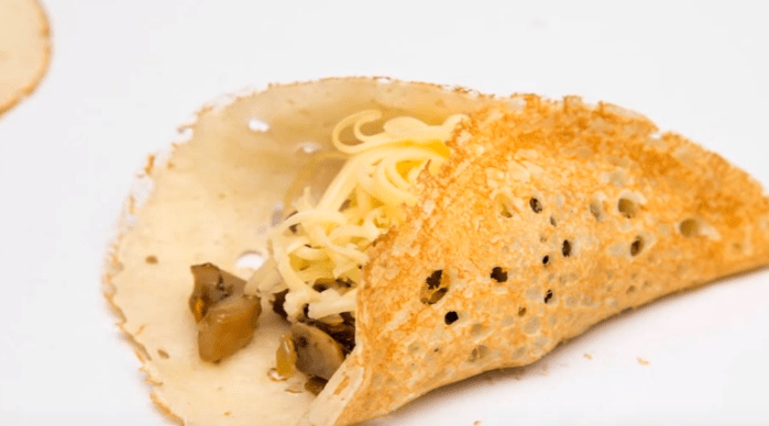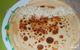 Сыр в данном рецепте можно использовать любой, но желательно, чтобы он был сливочный и мягкий. Блинчикам он придаст пикантный нежный вкус.