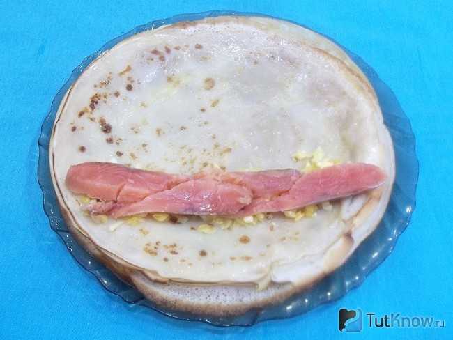 Рецепт блинов с начинкой из красной рыбы, лука и огурца