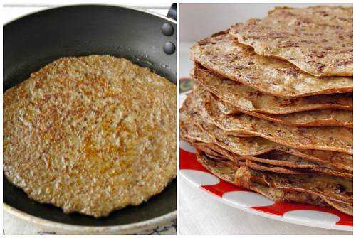 - Жарить их не сложно, но нужно приноровиться. Чтобы блины из печенки было легче переворачивать, возьмём посуду небольшого диаметра. Сковороду подогреваем и чуть смазываем маслом (сделать это можно с помощью кисточки). Тесто (около половинки половника) распределяем по всему её дну. Жарим блинчик с двух сторон и кладём его остывать на ровную поверхность.