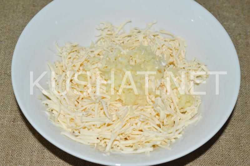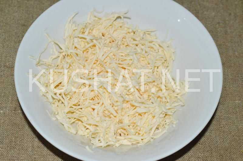 Приготовьте начинку. Плавленый сырок натрите на средней либо мелкой терке.