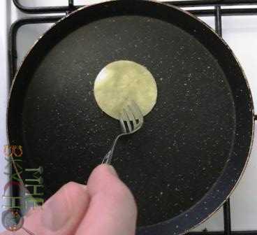 - Третий вариант самый трудоемкий. На сковородку выливают немного теста, сверху выкладывают начинку и заливают второй порцией. Получается, что начинка внутри.