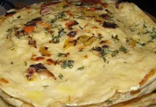 Вариант 3: Сытные блины с припеком из колбасы и сыра