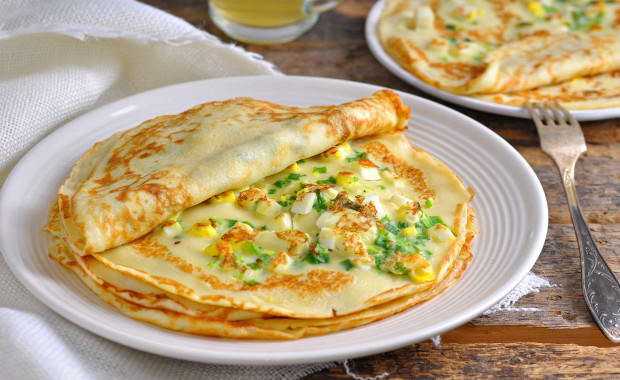 Как вы уже догадались, блины с припеком можно делать практически из чего угодно. Начинкой могут быть ягоды, фрукты, овощи, соленья и даже копчености. Единственная рекомендация – не используйте слишком сочные продукты, иначе блинчик может не получиться.