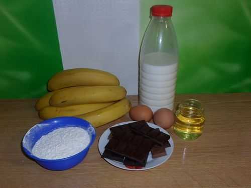 Перед тем как приготовить это сладкое блюдо, нужно подготовить все необходимые ингредиенты: муку, соль, яйца, бананы, молоко и масло.