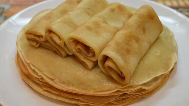 Тоненькие блинчики можно подавать с мясной начинкой, сметаной или сладкими ингредиентами. Для приготовления понадобятся простые и доступные продукты.