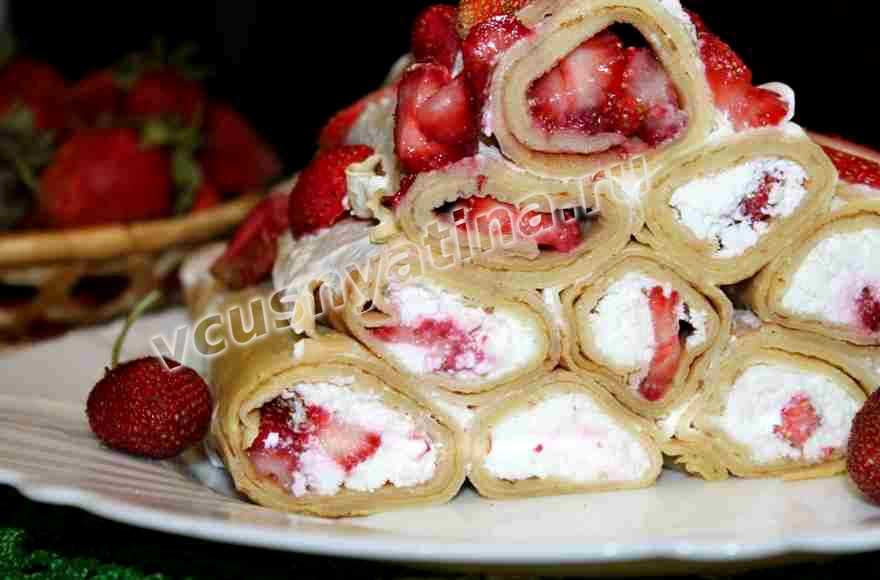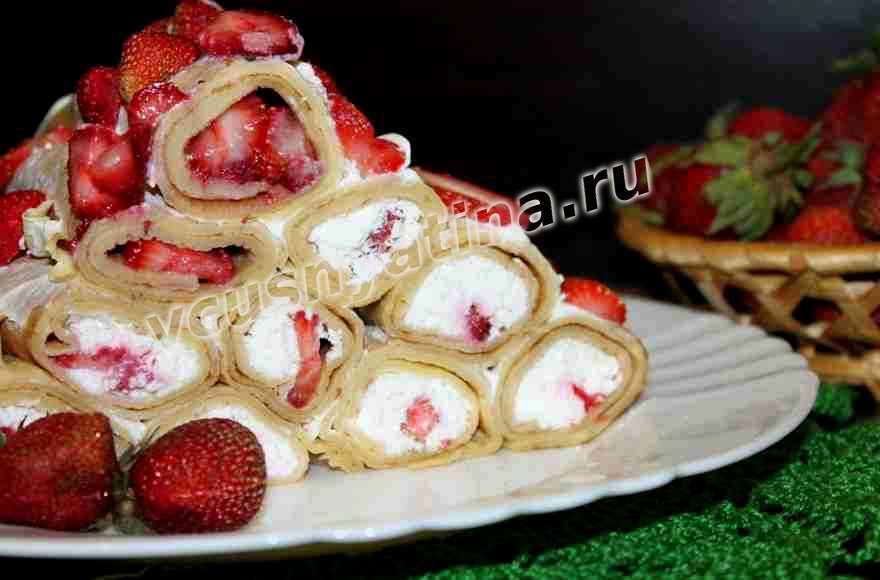 Рецепт блинчиков с творогом и клубникой
