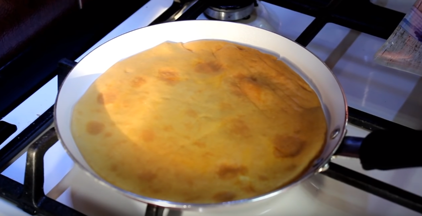 - Когда с одной стороны блинчик подрумянится, его переворачивают, обжаривают с другой.