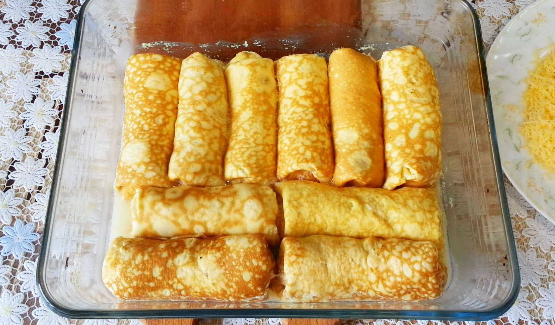 Это блюдо станет идеальным вариантом для использования вчерашних подсохших блинчиков.