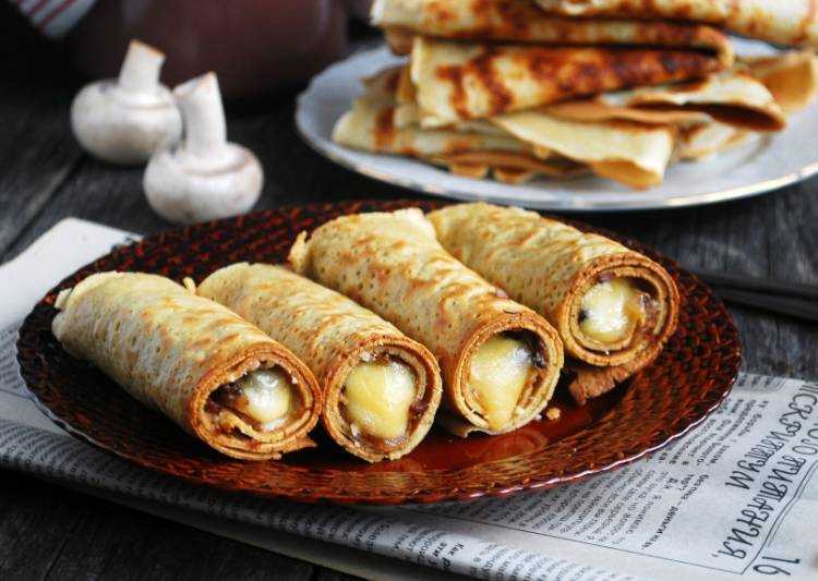 Готовим фаршированные блинчики с ветчиной, сыром и грибами