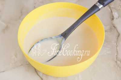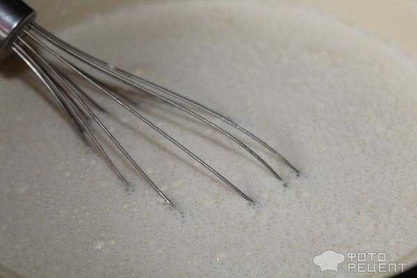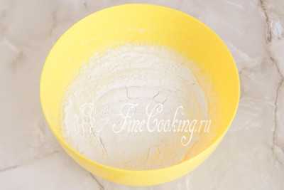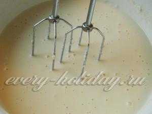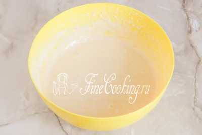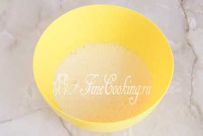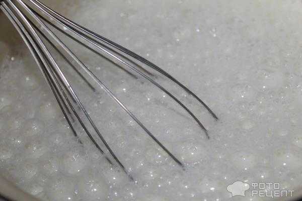 Хорошенько взбейте яичную смесь, с помощью венчика. Крупинки сахара должны полностью раствориться, а сверху образуется белая, пенная шапочка.