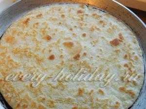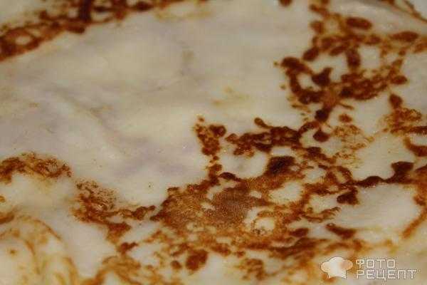 Оставляем миску прямо на столе хотя бы минут на 10-15, чтобы за это время клейковина в муке набухла. Блинное тесто для таких блинчиков получается немного жиже, чем, к примеру, для блинчиков на молоке.