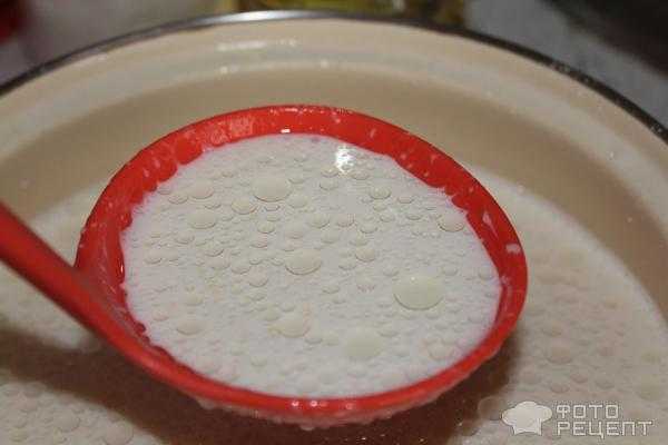 - Вскипятить молоко в сотейнике и немедленно залить стружку кокосов. Прикрыть плотно крышкой или блюдечком емкость.