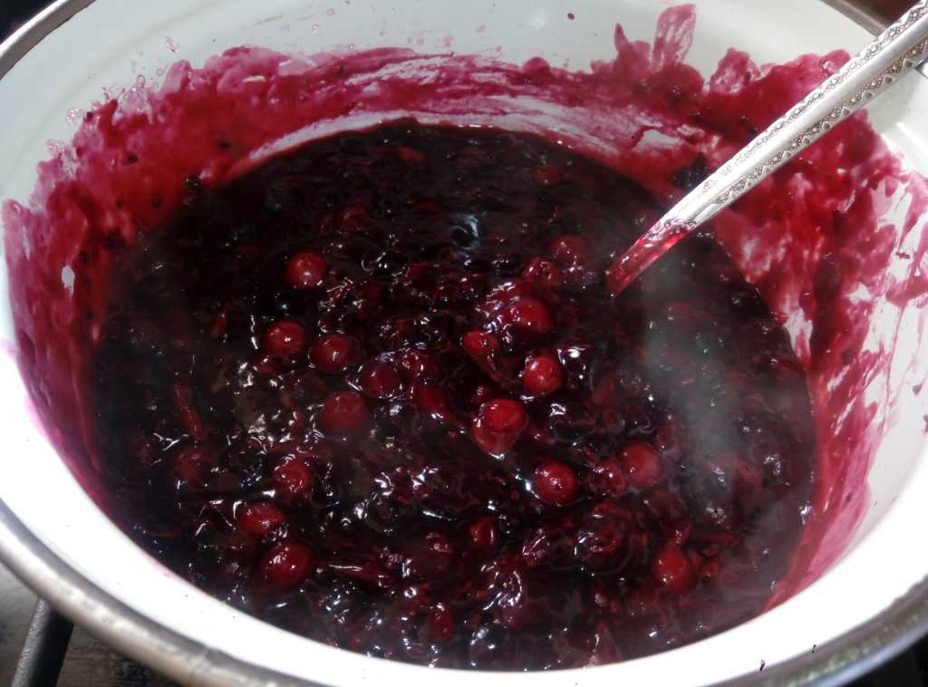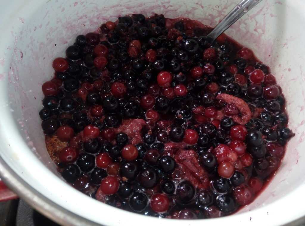 Начинка у нас должна получиться такой, что – бы и желеобразная масса была, и целенькие ягодки попадались. Поэтому варить ее долго не нужно. Все делается достаточно быстро.