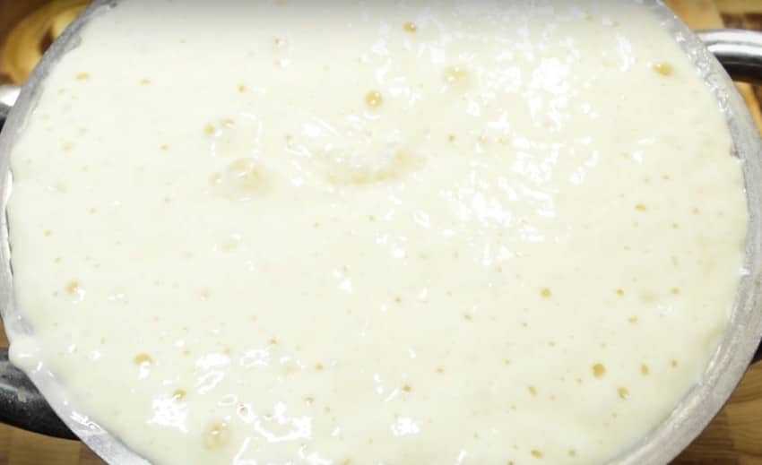 За это время тесто должно подняться и запениться. Чем выше будет температура среды, тем быстрее будет происходить процесс. По консистенции тесто должно быть таким же как и жидкая сметана.