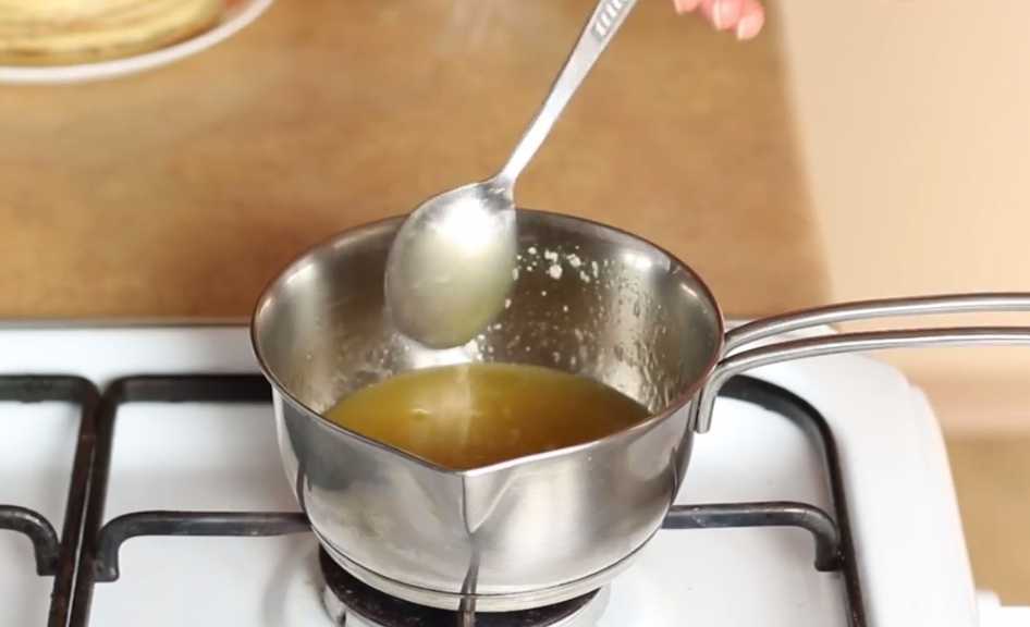 Как все блинчики готовы, можно начать готовить соус. Берем небольшую кастрюльку и кладем масло. Растапливаем его.