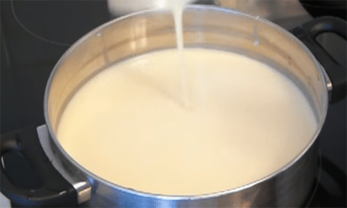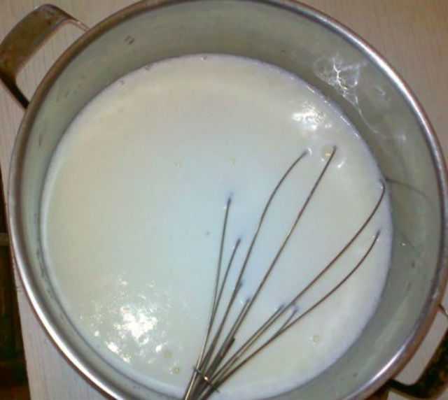 - Сыворотку заливаем в кастрюлю, ставим посуду на маленький огонь и нагреваем до чуть теплого состояния.