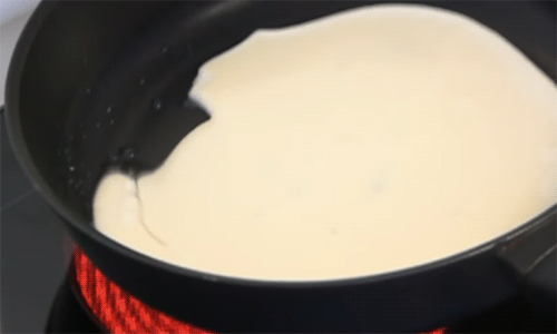 5. Буквально через пару минут на поверхности образуется много пузырьков. Если окунуть лопатку в тесто, то на её поверхности остается тонкий слой. Такое тесто готово к дальнейшему использованию.