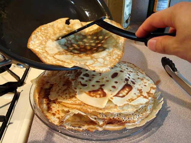 Блинчики можно жарить одновременно на двух сковородах – это очень удобно, а также сэкономит ваше время и силы.