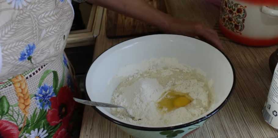 Сыворотка закипела и ее сразу заливаем в тесто на соду тонкой струйкой, при этом быстренько все перемешиваем. Тесто станет пышным и воздушным.