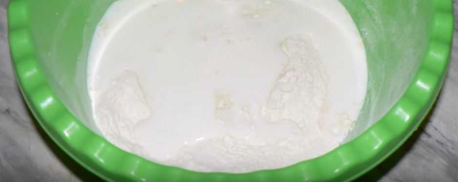 2. Вливаем кефир и размешиваем до однородного состояния.
