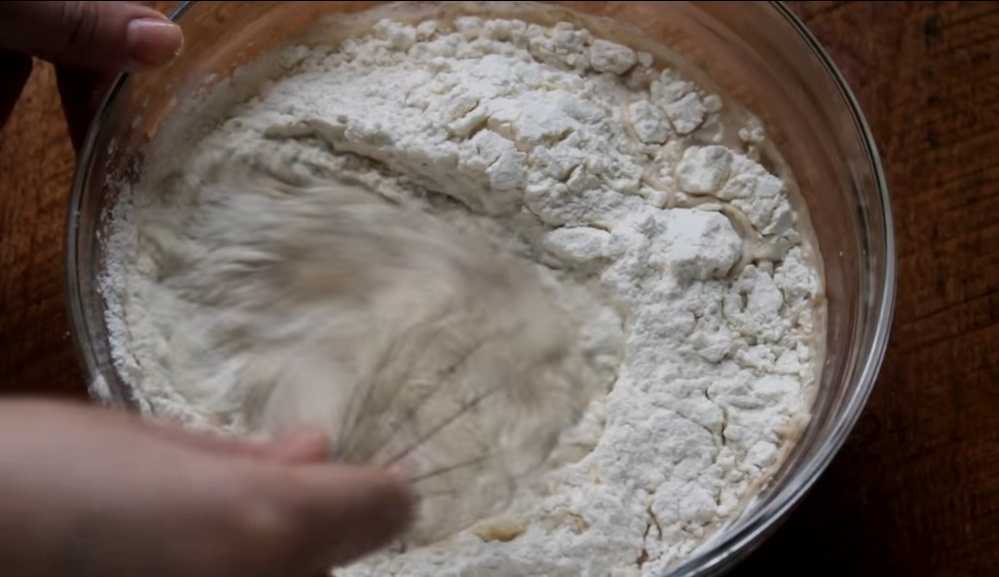 - Смешиваем сахар, соду и заранее просеянную муку.