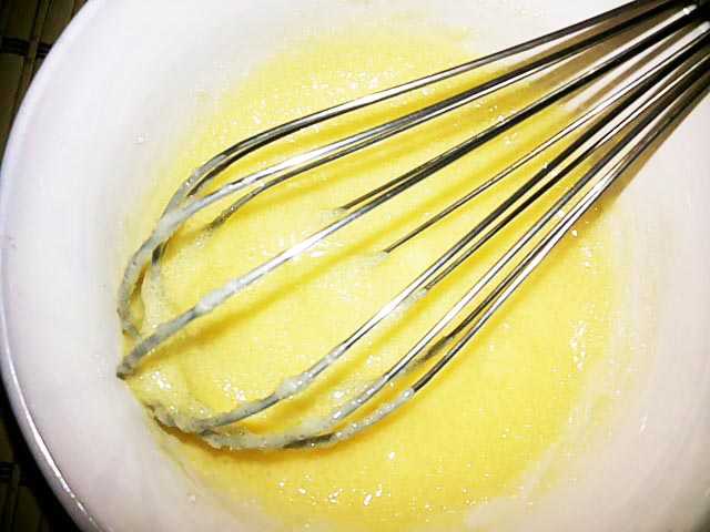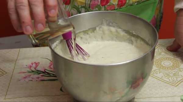 - В отдельной посуде растапливается сливочное масло и выливается в тесто горячим.